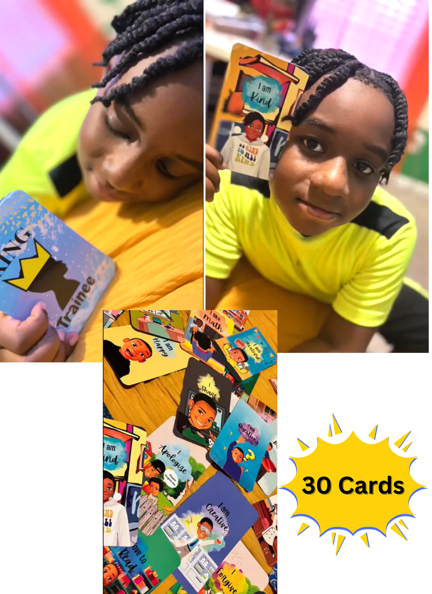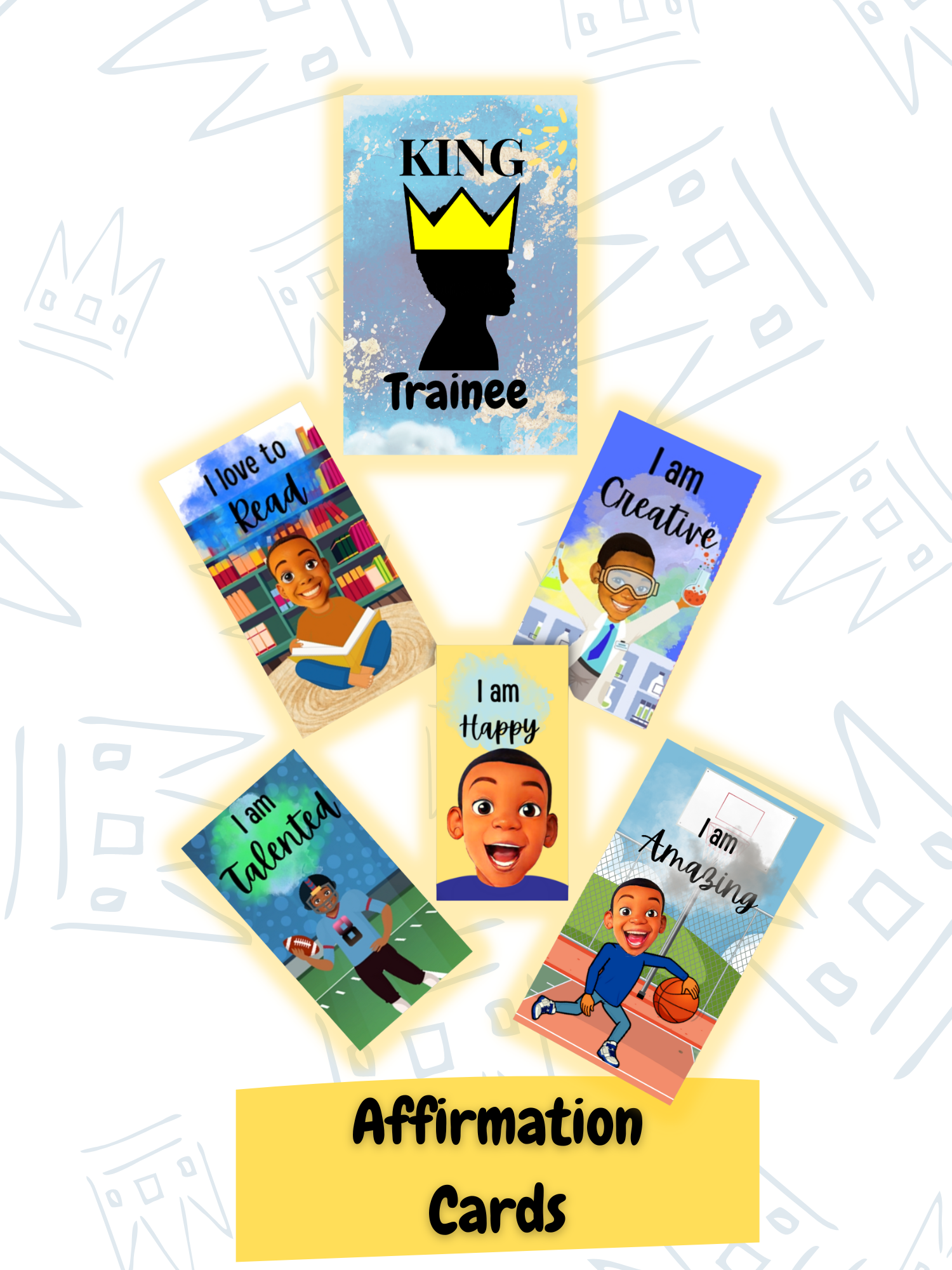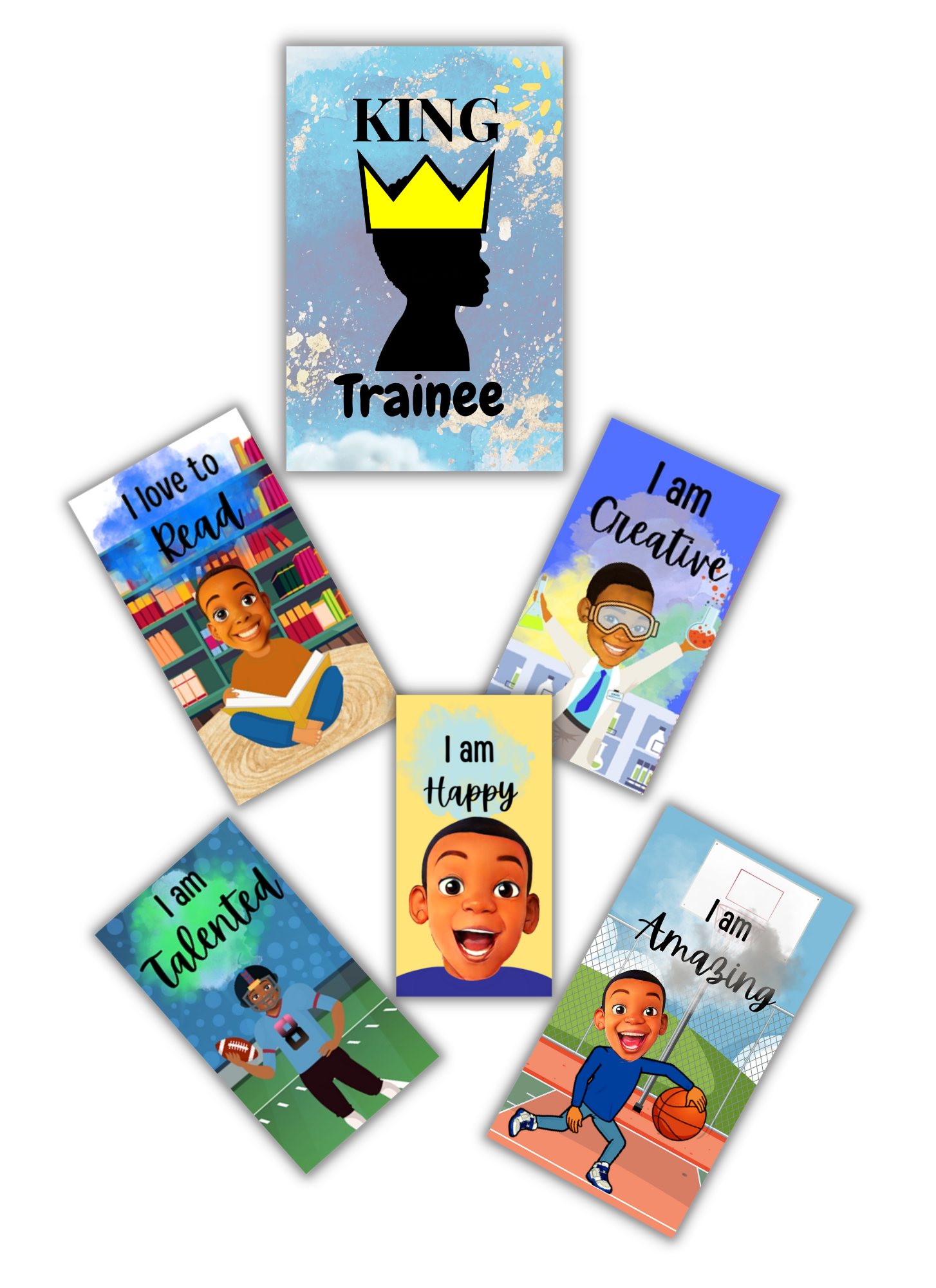 The King Trainee Affirmation Card Deck was designed to foster increased self-esteem and resilience in young black boys, enabling them to believe in themselves and their capabilities.