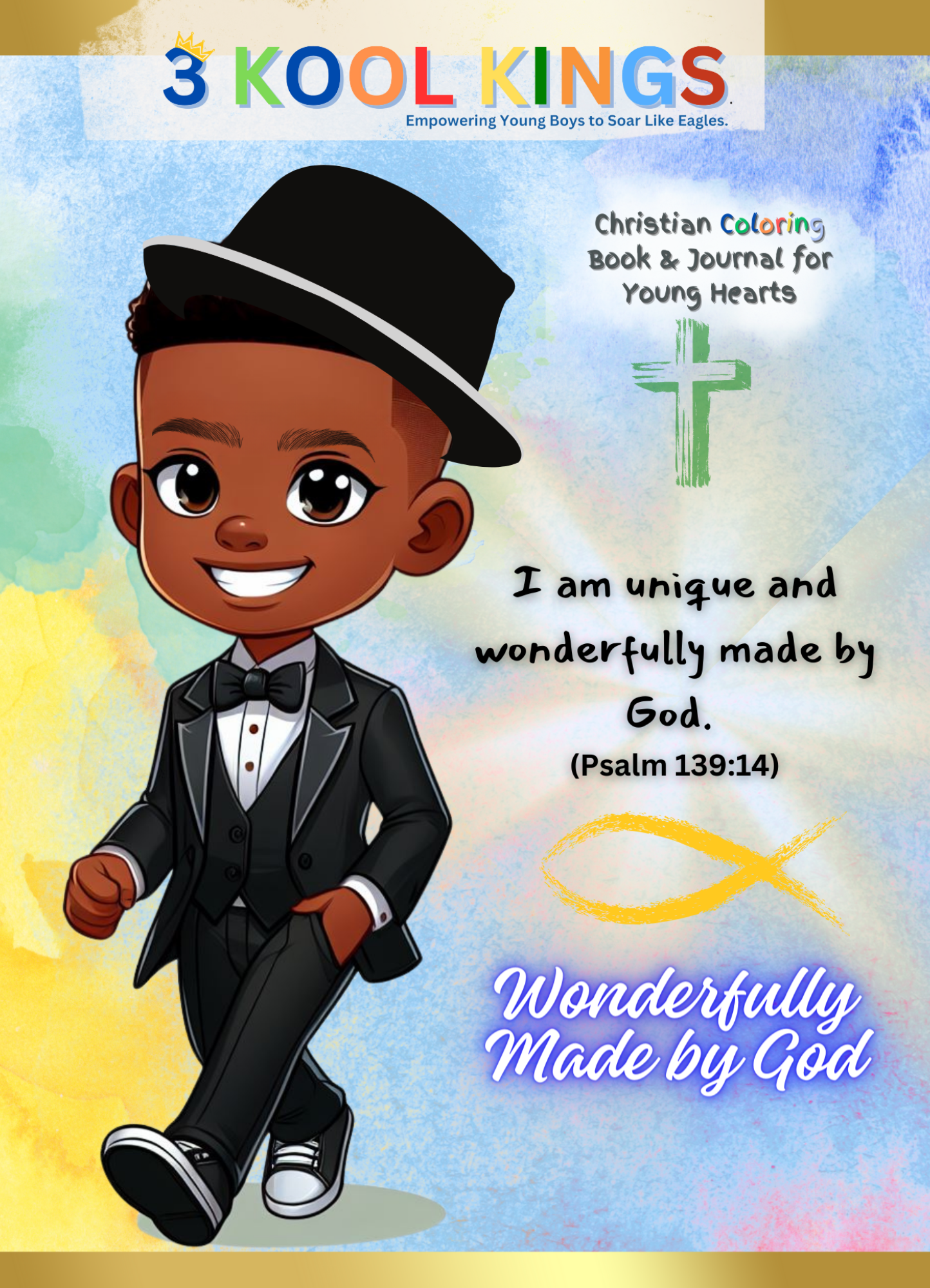Inspire and uplift the young hearts in your life with *Wonderfully Made by God Christian Coloring Book & Journal for Young Hearts*. Designed especially for Black American boys, this unique and empowering coloring book is filled with Bible affirmations, engaging activities, and beautiful illustrations that celebrate faith, culture, and individuality.